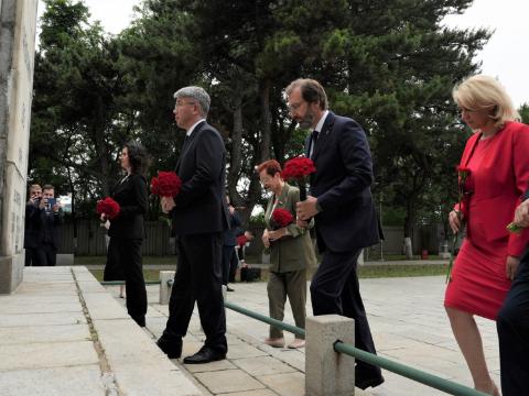 Парламентарии вместе с Генеральным консулом России в Шэньяне Натальей Прыжковой возложили цветы к Памятнику советским воинам в Шэньянском мемориальном комплексе. В церемонии также участвовали глава Бурятии Алексей Цыденов, председатель Законодательной Думы Томской области Оксана Козловская и представители Республики Саха (Якутия).