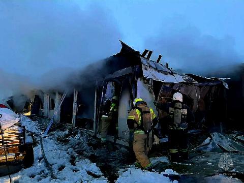 Пожар на объекте сельской экономики тушили 35 человек и 7 единиц техники. К половине десятого часа утра по местному времени они справились с открытым огнем. Ликвидация пожара продолжается.