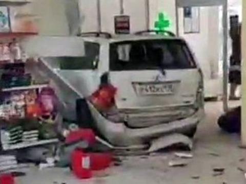 Камеры наблюдения, установленные на улице и внутри магазина, зафиксировали, как автомобиль сначала, двигаясь задним ходом, въехал в припаркованную напротив входа в магазин другую машину, после чего на скорости влетел во входную группу и остановился только в торговом зале дискаунтера.