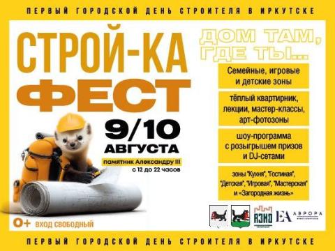 9 и 10 августа в Иркутске у памятника Александру III состоится первый городской фестиваль «СТРОЙ-КА ФЕСТ», приуроченный ко Дню строителя. Мероприятие организовано министерством строительства Иркутской области и Ассоциацией застройщиков региона при поддержке администрации города. Партнером выступает event-агентство «Аврора».