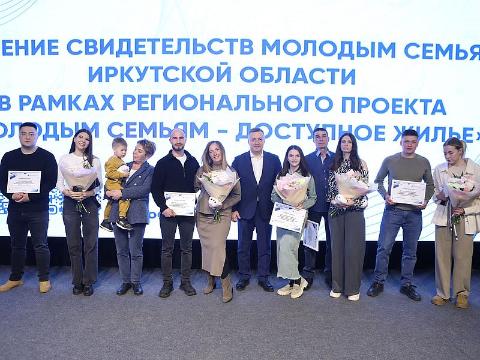 Губернатор Иркутской области Игорь Кобзев в субботу, 19 апреля, вручил свидетельства о праве на приобретение или строительство жилья 11 молодым семьям из Иркутска и Иркутского района. Церемония прошла в Доме молодежи в Иркутске во время праздничной акции, приуроченной ко Всероссийскому дню беременных. Средства выделены в рамках регионального проекта "Молодым семьям – доступное жилье".