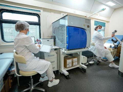 Медицинский поезд "Святой Пантелеймон" прибудет на БАМ и пациенты отдаленных населенных пунктов смогут получить консультацию квалифицированных врачей "РЖД-Медицины". В поезде можно сделать рентген, УЗИ и другие диагностические процедуры, а также сдать лабораторные анализы.