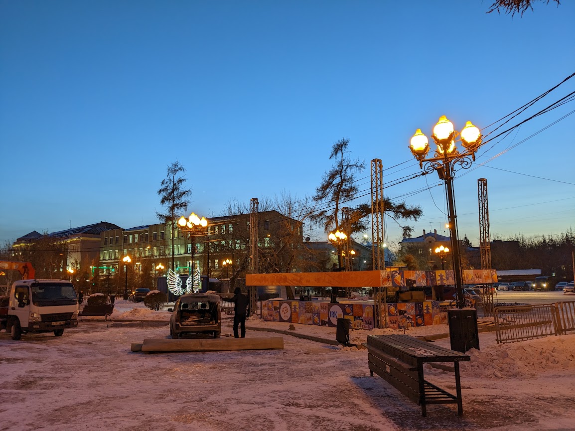 Отметим, что последние приготовления к завтрашнему празднику в сквере Кирова продолжаются. Но, в основном, главная новогодняя площадка Иркутска практически готова к открытию. Об этом - небольшой вечерний фоторепортаж из сквера.