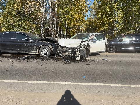 В результате "Мерседес" оказался на полосе встречного движения, где столкнулся с автомобилями "Фольксваген Пассат", "Хонда Фит" и "Жак".