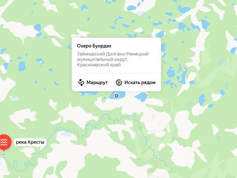 - Географическое положение озера установлено в километре к северу от реки Кресты, в бассейне реки Хета (координаты 70º7765 СШ, 99º8972 ВД). Название водоема имеет якутское происхождение и означает "пестрый", - добавили в ведомстве.