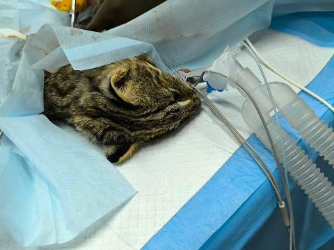 Ветеринары провели сложную операцию и смогли зафиксировать сломанную кость специальным стержнем. Процедура прошла успешно, но из-за общего тяжелого состояния у кота началось воспаление из-за повреждений мягких тканей в зоне травмы.