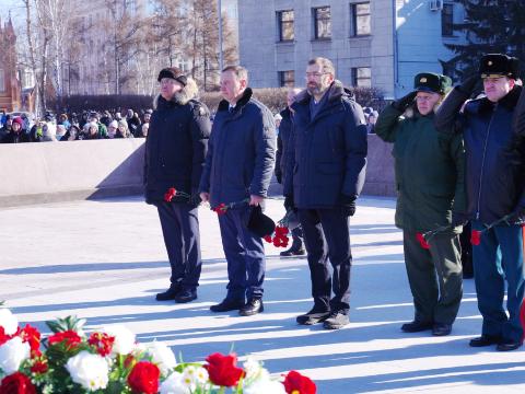 Торжественный митинг, посвященный Дню защитника Отечества, прошёл в Иркутске у мемориала «Вечный огонь Славы». В нем приняли участие председатель Законодательного собрания Приангарья Александр Ведерников, заместитель губернатора региона Вячеслав Эглит, федеральный инспектор по Иркутской области аппарата полномочного представителя Президента Российской Федерации в СФО Алексей Калинин, ветеран боевых действий, участник СВО Александр Мова. руководители силовых структур, представители ветеранских и патриотических общественных организаций, молодежных движений. Также на мероприятии присутствовали военнослужащие Вооруженных Сил России, курсанты военно-учебных центров ИГУ и ИРНИТУ, учащиеся Иркутского суворовского военного училища, участники движения «Юнармия» и другие.
