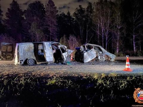 В результате столкновения машины загорелись. Оба водителя погибли до приезда скорой помощи.