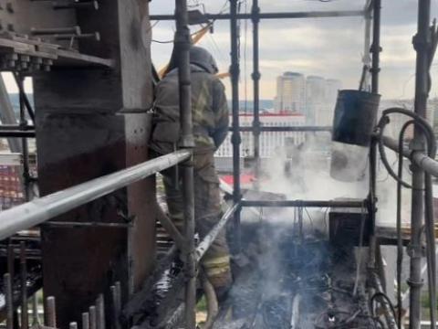 По уточненным данным, пожар возник из-за нарушения правил пожарной безопасности при проведении сварочных работ. Огонь уничтожил леса и сварочное оборудование на площади 25 квадратных метров.