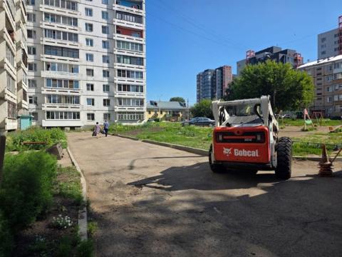 В округе №16, во дворе дома №10 на улице Ядринцева, начались работы по расширению парковки, организации проезда и асфальтированию территории.