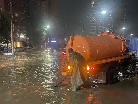 В администрации столицы Бурятии сообщили, что городские коммунальные службы будут всю ночь откачивать воду с улиц и дворов. В ночную смену вышли более десятка единиц спецтехники Комбината по благоустройству города Улан-Удэ.