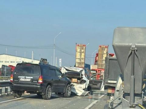 Предварительно установлено, что на участке дороги столкнулись пять машин. Сейчас устанавливаются подробности аварии.