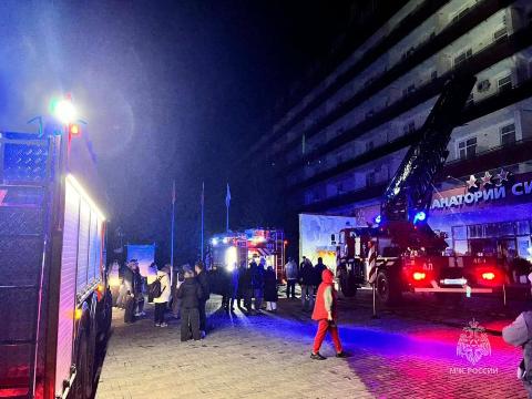 Прибывшие на место пожарные выяснили, что на первом этаже здания загорелась электрощитовая. Из здания санатория и соседних строений были эвакуированы сотни постояльцев и персонал санантория.