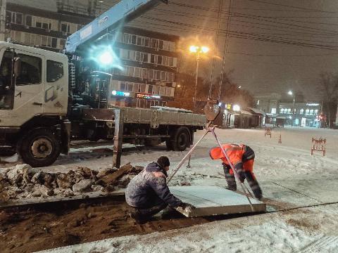 По информации пресс-службы администрации города, плиты поменяли на улице 1-я Советская, на перекрестке улиц Софьи Перовской и Партизанской, на улице Декабрьских Событий. Кроме того, по ночам работники МУП "Служба эксплуатации мостов" меняют плиты на путях, проходящих по мостовым сооружениям.