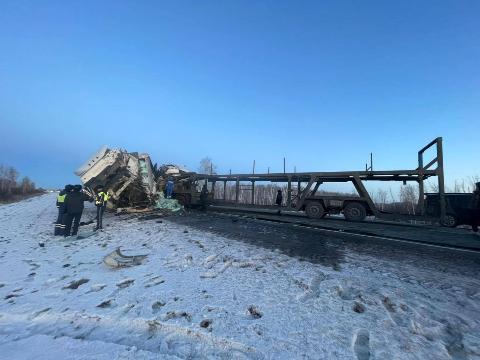 В результате столкновений водитель большегруза "ДАФ" погиб на месте, водителя автовоза увезли в больницу с травмами. Третий участник ДТП серьезно не пострадал, но его машина съехала в кювет.