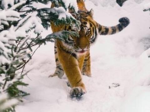 На окраине Дальнереченска в Приморье тигрица напала на бродячую собаку. Скорее всего, она унесла добычу в лес. Об этом сообщила пресс-служба Центра "Амурский тигр".