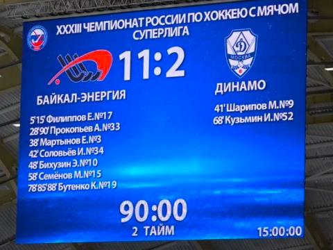 Иркутяне дома принимали московское "Динамо" и не оставили гостям ни единого шанса на победу. Хозяева открыли счет в матче на пятой минуте встречи и завершили первый тайм со счетом 5:1 в свою пользу. При этом, динамовцы смогли забить первый мяч в ворота "Байкал-Энергии" лишь на 41-й минуте, при счете 4:0.