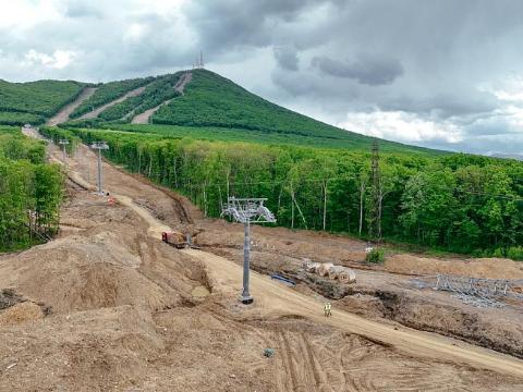 Канатная дорога "Д" уже готова, скоростная дорога "Е" протяженностью 1522 метра тоже готова. Верхний подъемник планируют запустить в тестовом режиме в ближайшее время.