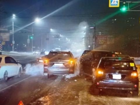 ДТП с участием пяти машин произошло в Чите на перекрестке улиц Шилова и Новобульварной вечером 23 января. Об этом сообщили в группе по пропаганде безопасности дорожного движения УГИБДД УМВД России по Забайкальскому краю.