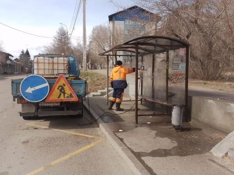 Уборка остановок общественного транспорта была проведена на улицах 2-я Железнодорожная, Партизанская, Тимирязева, Карла Либкнехта, Байкальская, Советская, Волжская, Ширямова, 3-го Июля, Седова и других.
