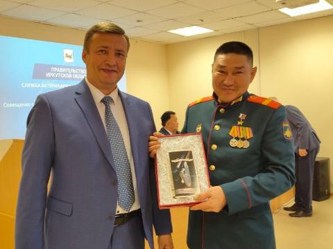 Также Сергей Шевченко вручил ценный подарок Герою России, ветеринарному фельдшеру Нукутского филиала Черемховской станции по борьбе с болезнями животных Сергею Степанову. Напомним, за проявленный во время специальной военной операции героизм президент России Владимир Путин своим указом от 3 мая этого года присвоил Сергею Степанову звание Героя России.