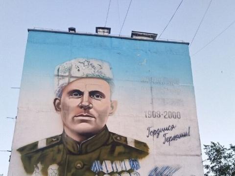 В Чите на торцевой стене многоквартирного дома в переулке Железобетонном появился мурал, посвященный земляку, механику-водителю танка "Катюша" Александру Юрконенко. Об этом сообщается в Telegram-канале правительства Забайкальского края.