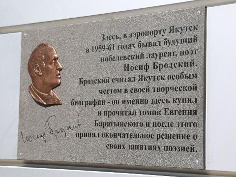 Мемориальная доска Бродскому появилась в аэропорту Якутска по инициативе народного поэта Якутии Натальи Харлампьевой и заместителя председателя Государственного собрания (Ил Тумен) Республики Саха (Якутия), председателя Ассамблеи народов Якутии Александра Подголова. Их инициативу поддержал глава Якутии Айсен Николаев, мэр Якутска Евгений Григорьев и генеральный директор аэропорта Якутска Сергей Игнатенко.