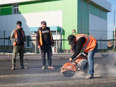 После окончания монтажа инженерных коммуникаций к строящейся школе подрядная организация уложит нижний слой покрытия на площади 6 тыс. кв. м. В случае положительных заключений лаборатории специалисты приступят к укладке верхнего слоя площадью 13 тыс. кв. м, включая территорию возле нового образовательного учреждения.