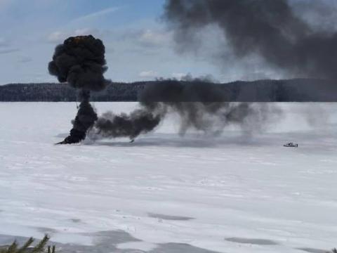 Накануне в Туруханском районе Красноярского края произошло ЧП. Около часа дня 25 апреля недалеко от поселка Бор на льду реки Енисей загорелось судно на воздушной подушке.