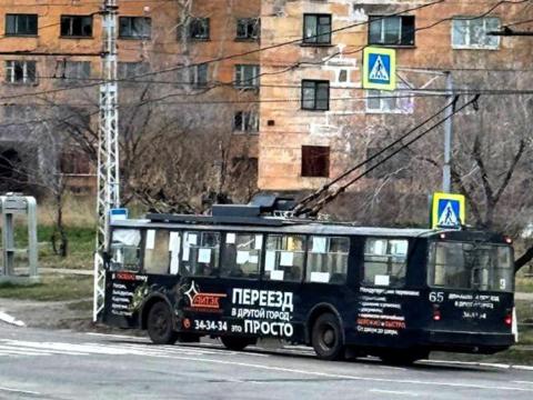 В последнее время по улицам Братска курсирует обычный муниципальный троллейбус, на борту которого можно увидеть рекламный слоган: «Переезд в другой город — это просто».