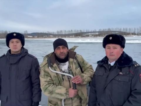 В глухом районе Иркутской области полицейские совершили настоящий спасательный рейд: в темноте, по пояс в снегу и сквозь метель они вытащили из воды рыбака, уносимого льдиной по реке Киренга.