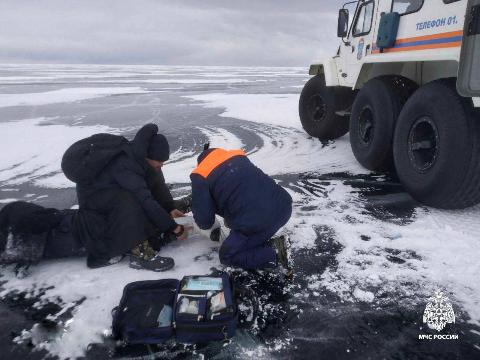 Сотрудники МЧС оказали мужчине первую медицинскую помощь, зафиксировали поврежденную ногу, перенесли его в вездеход и доставили на берег, где их уже ждали врачи скорой медицинской помощи. Пострадавшего госпитализировали.