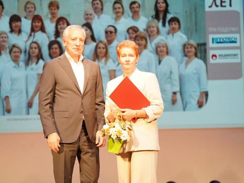 Владимир Мазур поблагодарил коллектив роддома за труд, профессионализм и за любовь к своей профессии и вручил им областные награды.
