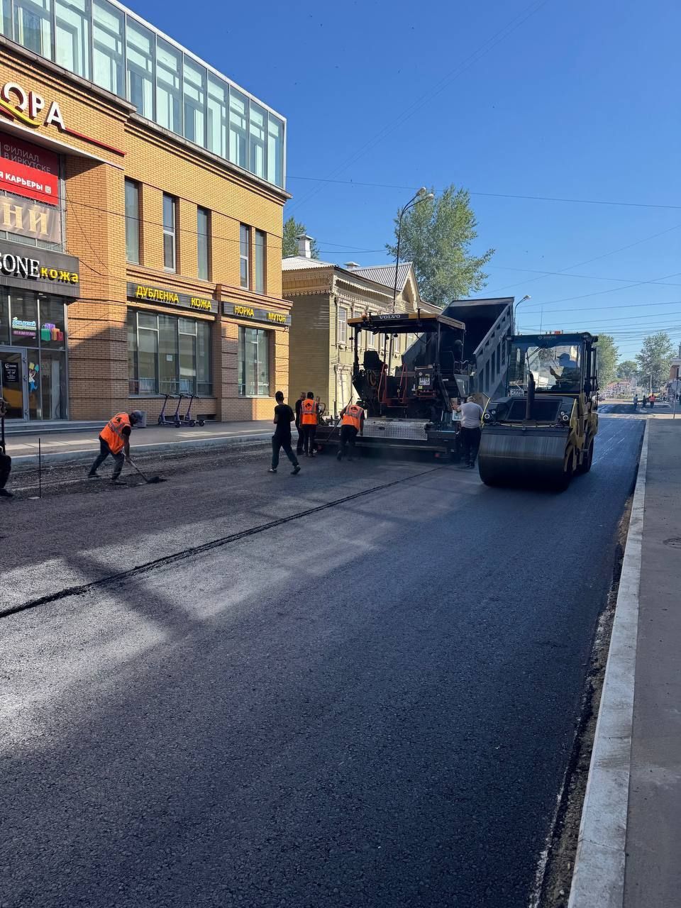 В центре Иркутска на улице Дзержинского за минувшие выходные подрядчики уложили нижний слой асфальта. В следующие выходные запланирована укладка верхнего слоя дорожного покрытия.
