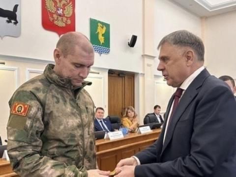 Также медаль «За боевые отличия» получила стрелок Артем Бороздин. Мэр подчеркнул, что его призвали в сентябре 2022 года, он мужественно выполнял боевые задачи, а в августе 2025 года получил ранение и был уволен в отставку.