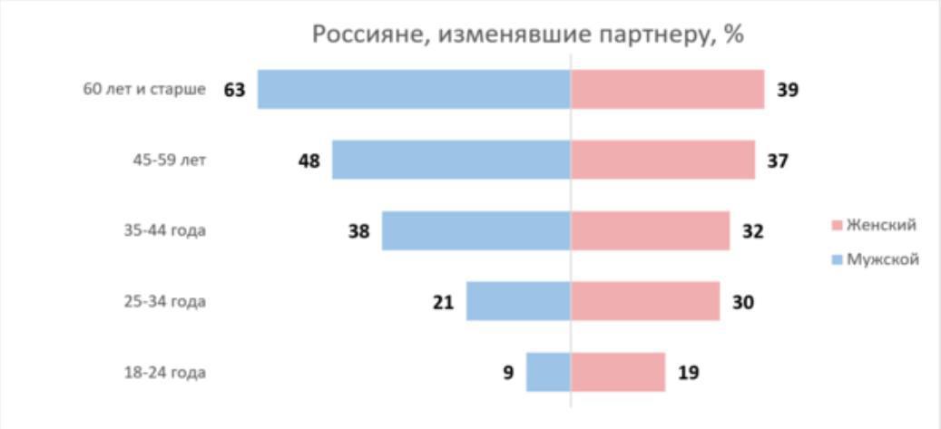 Исследование выявило любопытную возрастную динамику: среди молодых пар до 34 лет женщины изменяют чаще мужчин. Однако после 35 лет ситуация меняется — мужчины начинают «лидировать» по количеству измен, причём с возрастом эта тенденция только значительно усиливается.