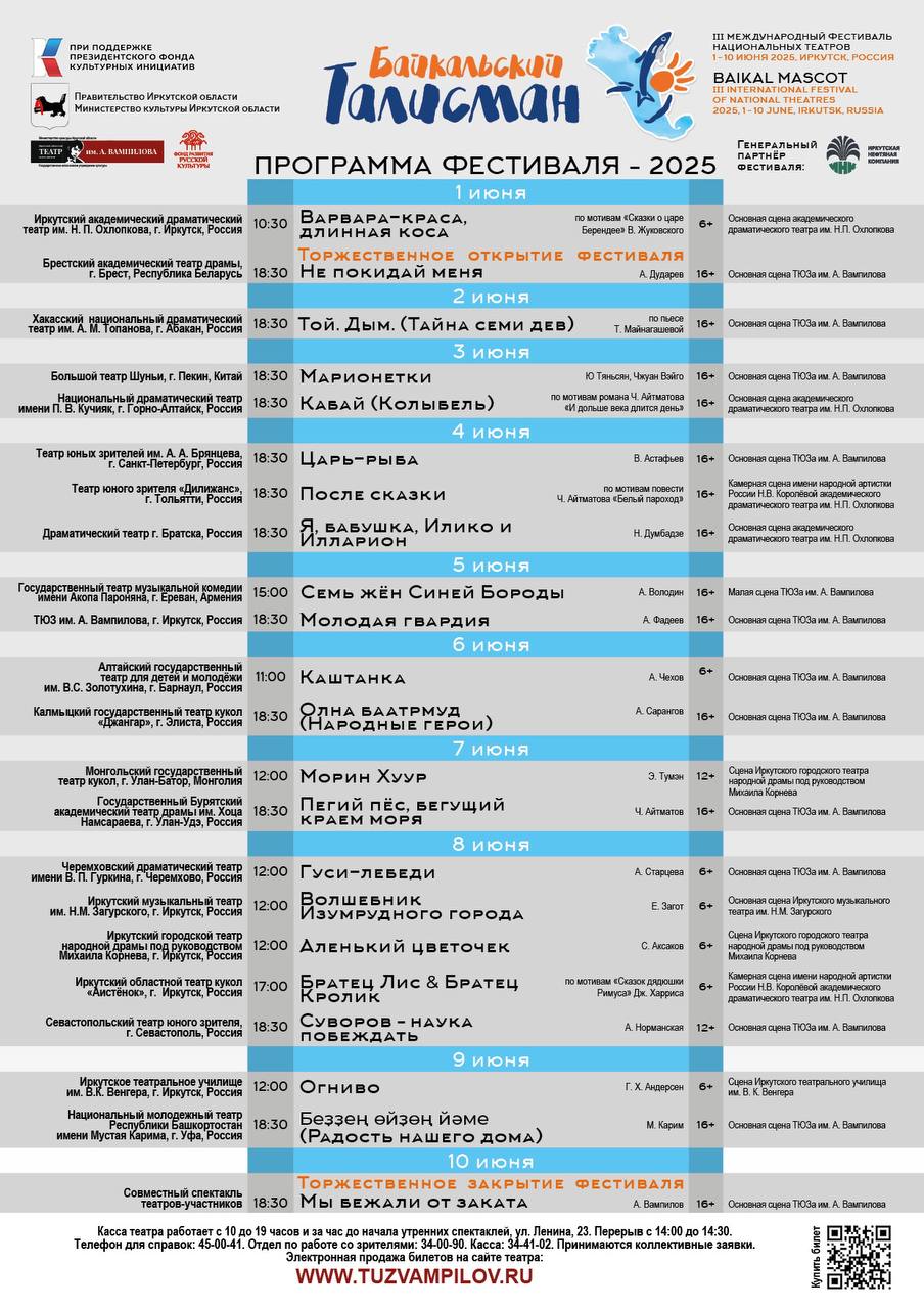 Организаторы III Международного фестиваля национальных театров «Байкальский талисман» опубликовали репертуар события.