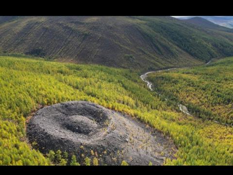 Патомский кратер, известный также как Конус Колпакова– таинственный объект, расположенный в 300 километрах от города Бодайбо. Его необычная форма давно привлекает внимание исследователей. Больше всего он похож на метеоритный кратер с Луны или Марса.