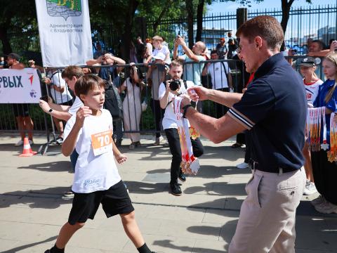 В рамках праздника, во Владивостоке состоялся "Забег первых", в котором приняли участие более двух тысяч первоклассников и учеников младших классов школ города. Дети пробежали дистанцию от Национального центра "Россия" до фонтана на Спортивной набережной города. Их напутствовал и приветствовал на финише губернатор Приморского края Олег Кожемяко. Он пожелал юным землякам стать сильными, выносливыми и успешными людьми.