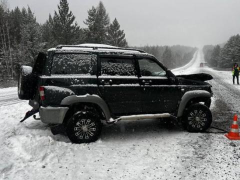 По предварительным данным, 45-летний водитель внедорожника не справился с управлением, выехал на встречную полосу и столкнулся с первым автобусом. От удара второй автобус по инерции съехал с проезжей части и врезался в деревья.